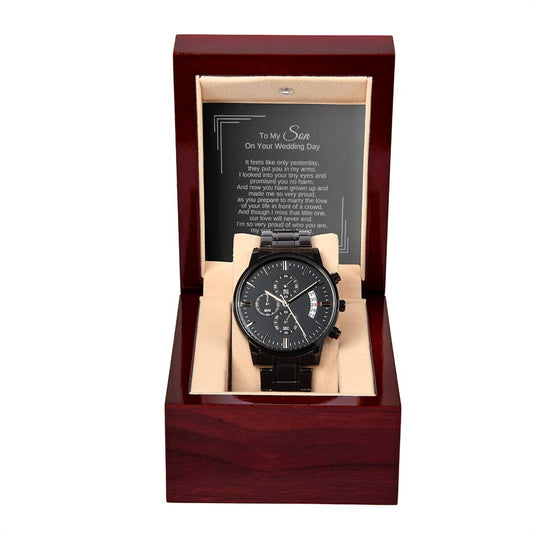 Stylish Black Chronograph Watch: Perfect Wedding Day Gift for Son