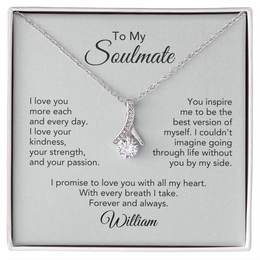 Soulmate Gift for Her White Gold Necklace Girlfriend Gift Necklace for Wife Personalized Card
