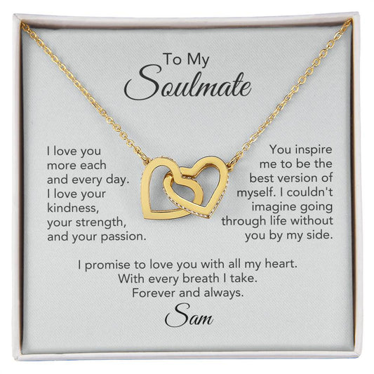 Soulmate Gift for Her Hearts Necklace Girlfriend Gift Necklace for Wife Personalized Card