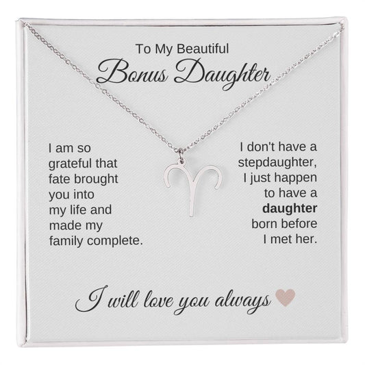 To My Beautiful Bonus Daughter Gift, Delicate Zodiac Necklace Gold or Stainless Steel, Gift for Step Daughter