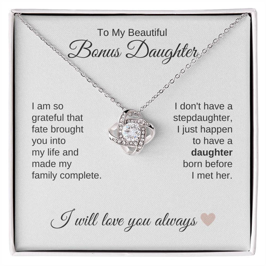 To My Bonus Daughter Gold Love Knot Necklace Gift, Stepdaughter Gift