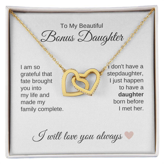 To My Bonus Daughter Interlocking Hearts Necklace Gift, Stepdaughter Gift
