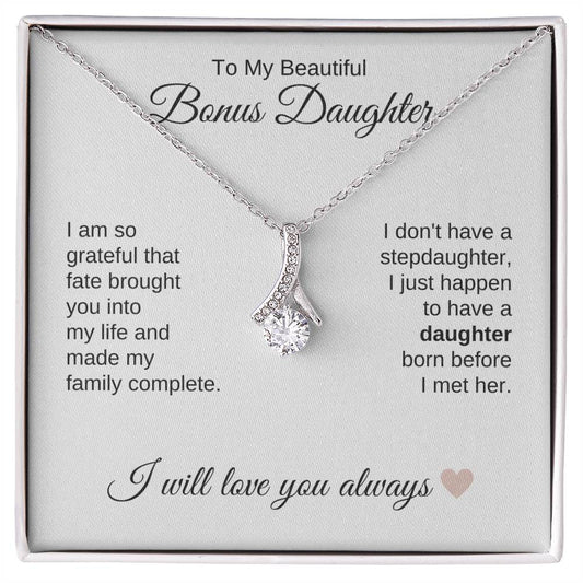 To My Bonus Daughter White Gold Necklace Gift, Stepdaughter Gift