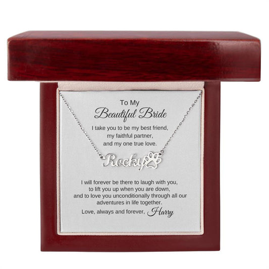 To My Beautiful Bride Gift To Bride From Groom Wedding Gift Pawprint Name Necklace
