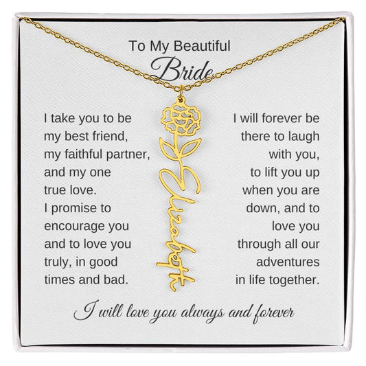To My Beautiful Bride Gift To Bride From Groom Wedding Gift Flower Name Necklace
