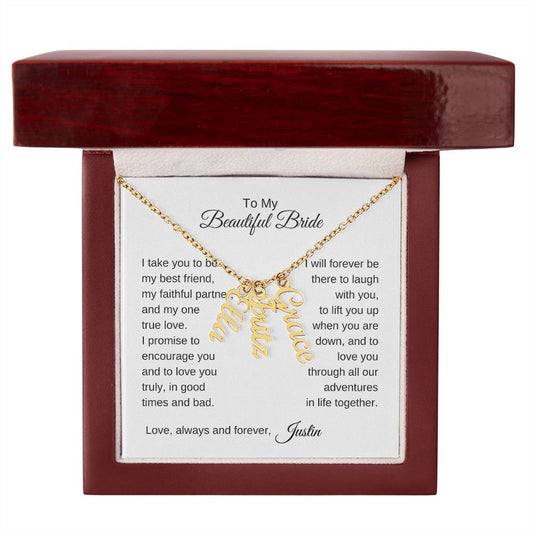 To My Beautiful Bride Gift To Bride From Groom Wedding Gift Vertical Names Necklace