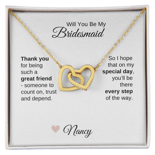 Will You Be My Bridesmaid Proposal Gift Interlocking Hearts Necklace