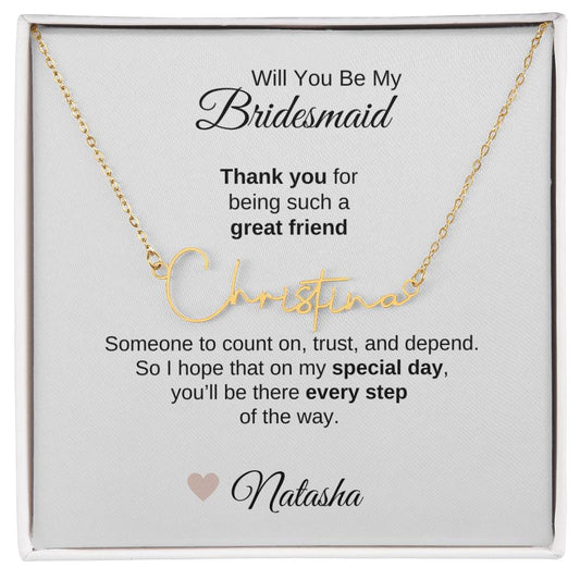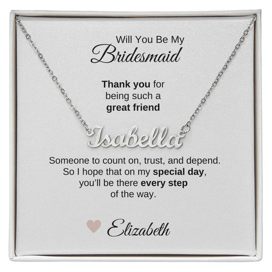 Will You Be My Bridesmaid Proposal Gift Script Name Necklace