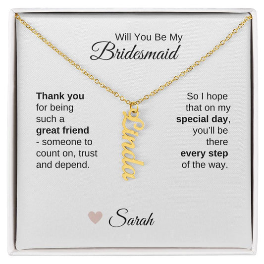 Will You Be My Bridesmaid Proposal Gift Vertical Custom Name Necklace