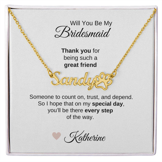 Will You Be My Bridesmaid Proposal Gift Custom Name Pawprint Necklace
