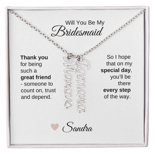 Will You Be My Bridesmaid Proposal Gift Vertical Custom Names Necklace