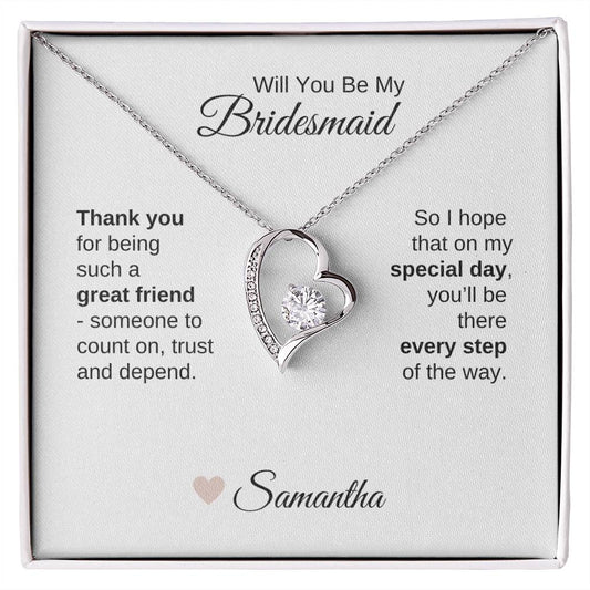 Will You Be My Bridesmaid Proposal Gift Custom Name Heart Necklace