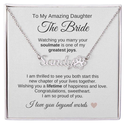 Daughter Wedding Gift Wedding Present for Daughter Custom Name Paw Print