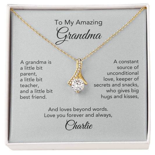 Golden Memories: Ribbon Pendant Necklace Gift for Grandma - Elegant Sentiments!