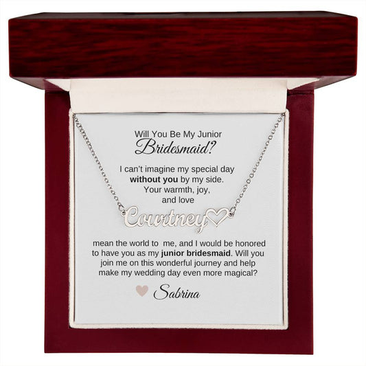 Junior Bridesmaid Proposal Gift, Heart Name Necklace, Jr Bridesmaid Gift