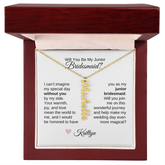 Junior Bridesmaid Proposal Gift, Vertical Name Necklace, Jr Bridesmaid Gift
