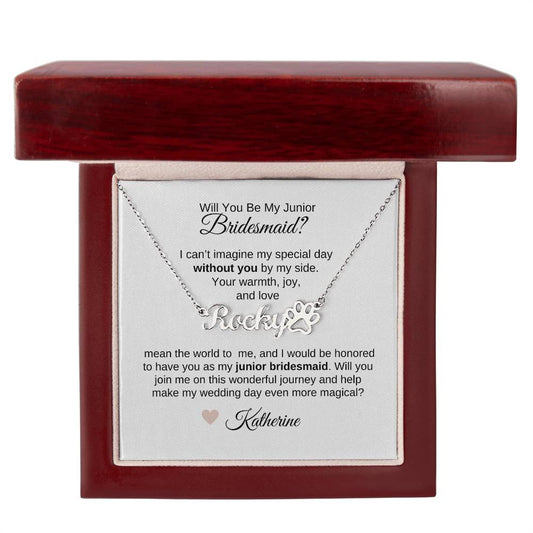 Junior Bridesmaid Proposal Gift, Pawprint Name Necklace, Jr Bridesmaid Gift