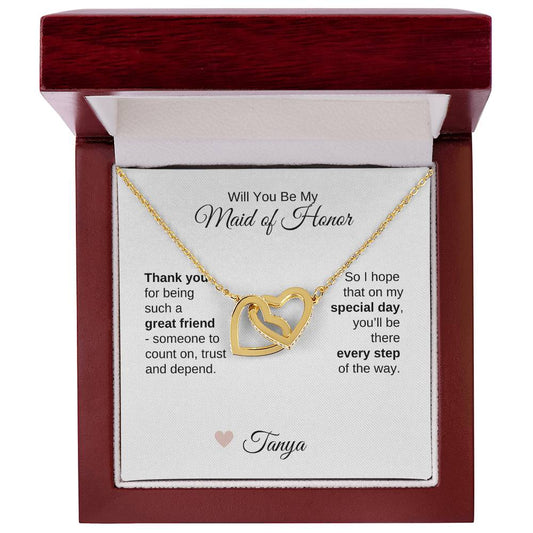 Will You Be My Maid of Honor Proposal Gift Interlocking Hearts Necklace