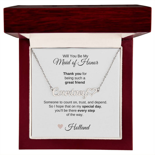 Will You Be My Maid of Honor Proposal Gift Heart Name Necklace