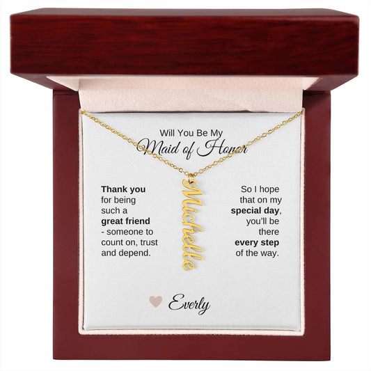 Will You Be My Maid of Honor Proposal Gift Vertical Name Necklace