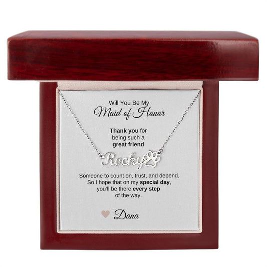 Will You Be My Maid of Honor Proposal Gift Pawprint Name Necklace