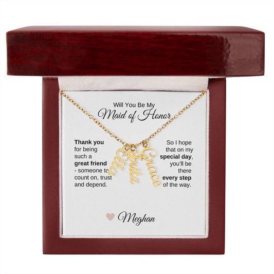 Will You Be My Maid of Honor Proposal Gift Vertical Names Necklace