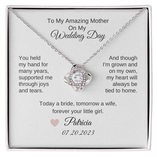 Eternal Bonds: Personalized Mother of the Bride Love Knot Necklace Gift From Daughter - Timeless Love!