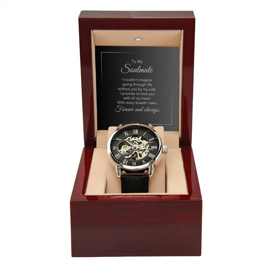 To My Soulmate Gift, Men's Luxury Openwork Watch with Heartfelt Message Card, Gifts for Him