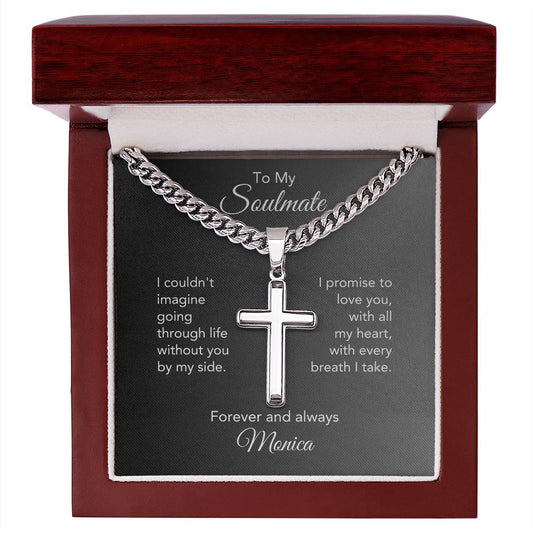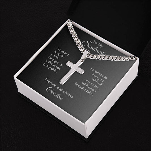 To My Soulmate Gift, Cuban Chain with Cross and Heartfelt Personalized Message Card, Gifts for Him